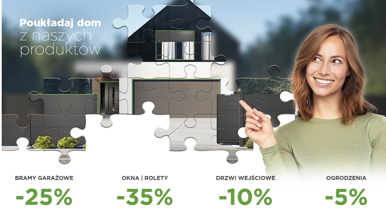 Zyskaj rabaty, które Ci pasują Zamów bramy, okna, rolety, drzwi i ogrodzenia z rabatem do -35%!Dom to układanka. Jej ułożenie jest